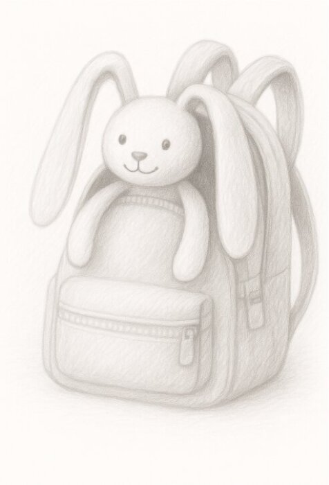 Ik huppel naar de bank en zie de gele rugzak van mama. Meestal neemt ze die mee naar haar werk. Dan zit haar laptop erin. Maar nu gaat de rugzak mee naar het ziekenhuis. Net als Nijn. Ik geef haar een kus en doe de rits open. Ik laat haar hoofd en oren uitsteken. Dan kan Nijn alles goed zien.